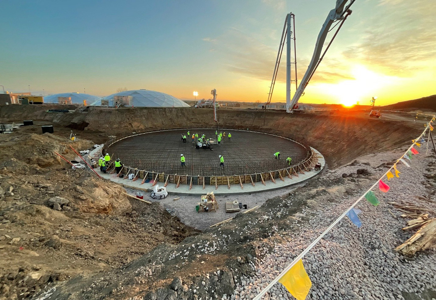 Construction of building structures for liquids and solids handling. Begin installation of underground piping. We are Here -
